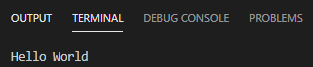 실행하면 TERMINAL에 Hello World가 찍힌 것을 확인할 수 있다
