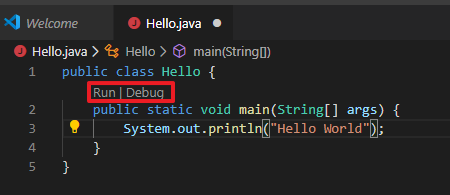 코드를 작성하면 main method 위에 Run | Debug 버튼이 생긴다