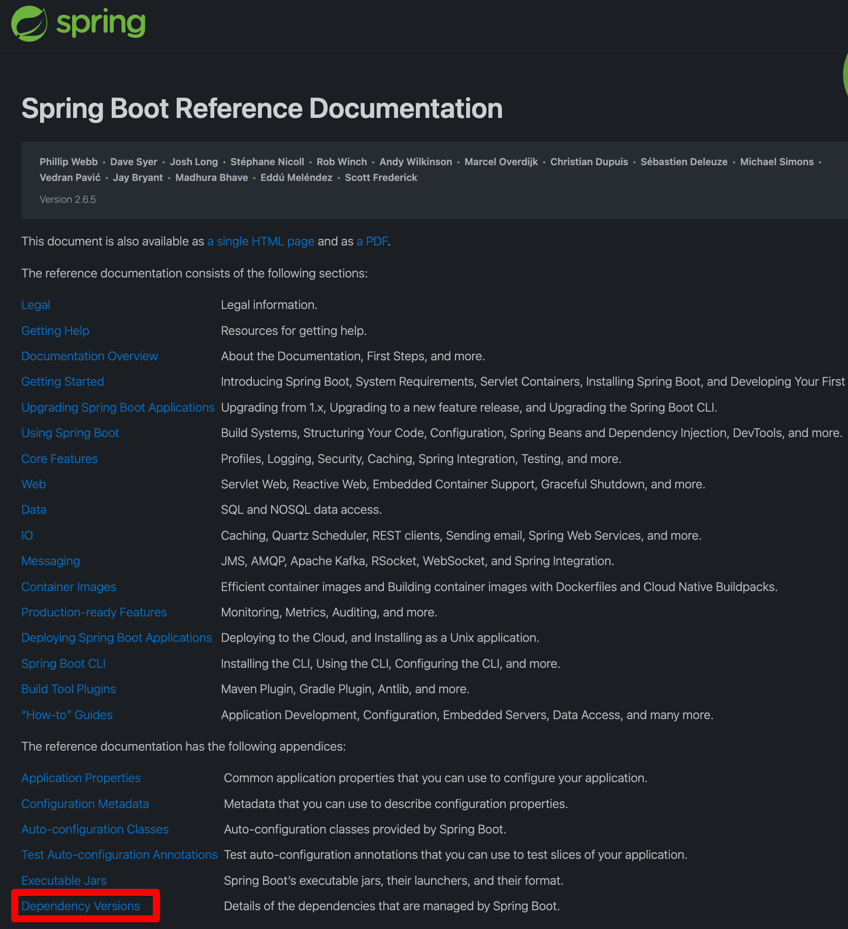 2. 레퍼런스 문서 제일 하단 Dependency Versions 클릭!
