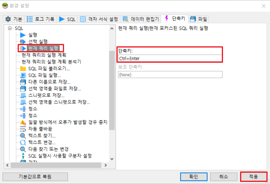3. 쿼리 실행 단축키 (추천)