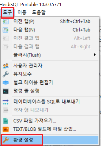 1. 상단 탭 도구 -> 환경설정