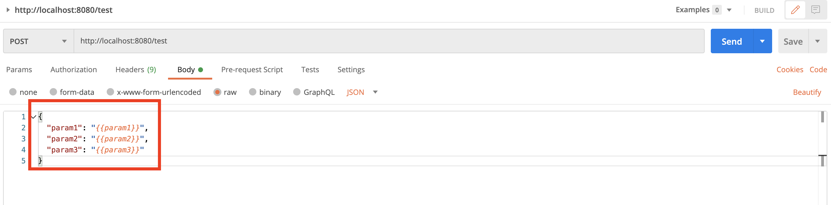 3. Request 작성 , JSON Body 파라미터 입력받도록 작성