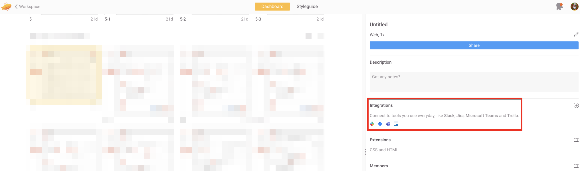 2. 우측 메뉴 Integrations -> Slack 아이콘 클릭