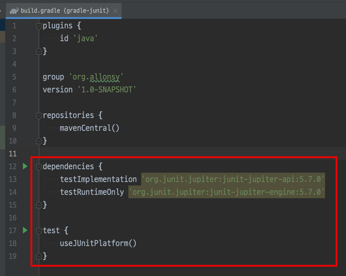 힁 ^,^ 속았지~? 사실 Gradle 프로젝트로 생성하면 JUnit 설정을 따로 해줄 필요 없이 build.gradle 파일에 이미 추가 되어 있음