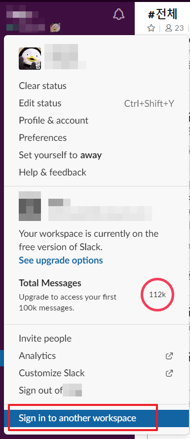 1. 슬랙 앱에서 워크스페이스명 클릭